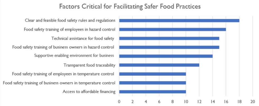 Factors survey respondents identified as most critical for facilitating safer food practices